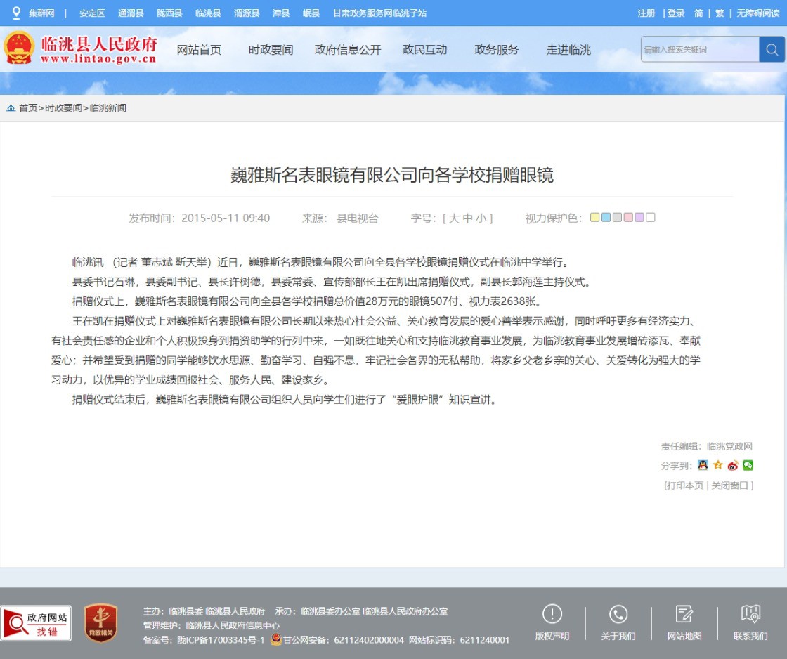 巍雅斯名表眼鏡有限公司向各學(xué)校捐贈(zèng)眼鏡