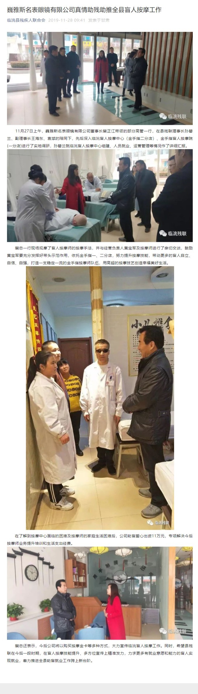 巍雅斯名表眼鏡有限公司真情助殘助推全縣盲人按摩工作