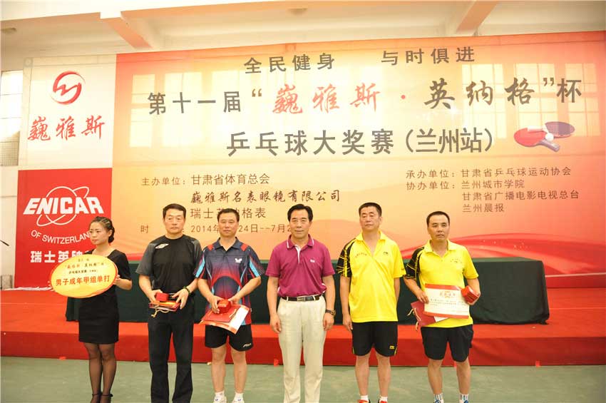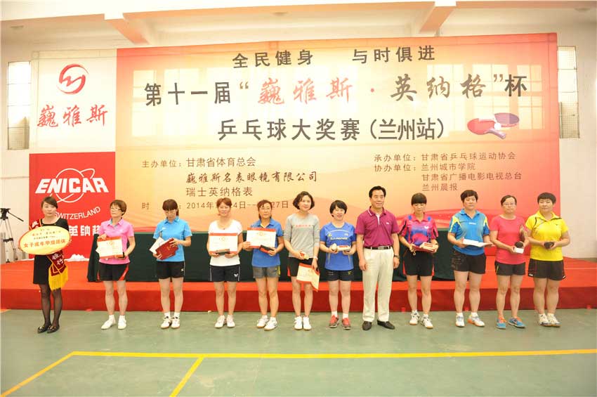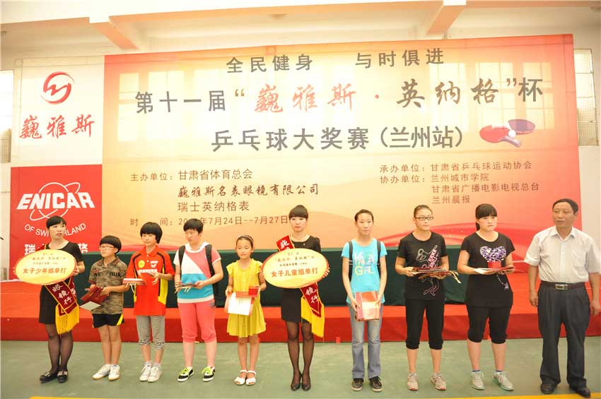 本屆大賽由甘肅省體育總會、巍雅斯名表眼鏡有限公司、瑞士英納格表主辦,甘肅省乒乓球運動協(xié)會承辦,蘭州城市學(xué)院、甘肅廣播電影電視總臺、蘭州晨報協(xié)辦。來自甘肅、寧夏、青海、陜西、內(nèi)蒙古、西藏等六?。▍^(qū))的76個俱樂部、188支代表隊的800多名運動員參加了所在組別的團(tuán)體和單打比賽。最終好朋友一隊的趙義春、巍雅斯一隊的黃春紅等六名運動員分別摘取了5000多元手表大獎,其余110多個獎項也最終花落各家。