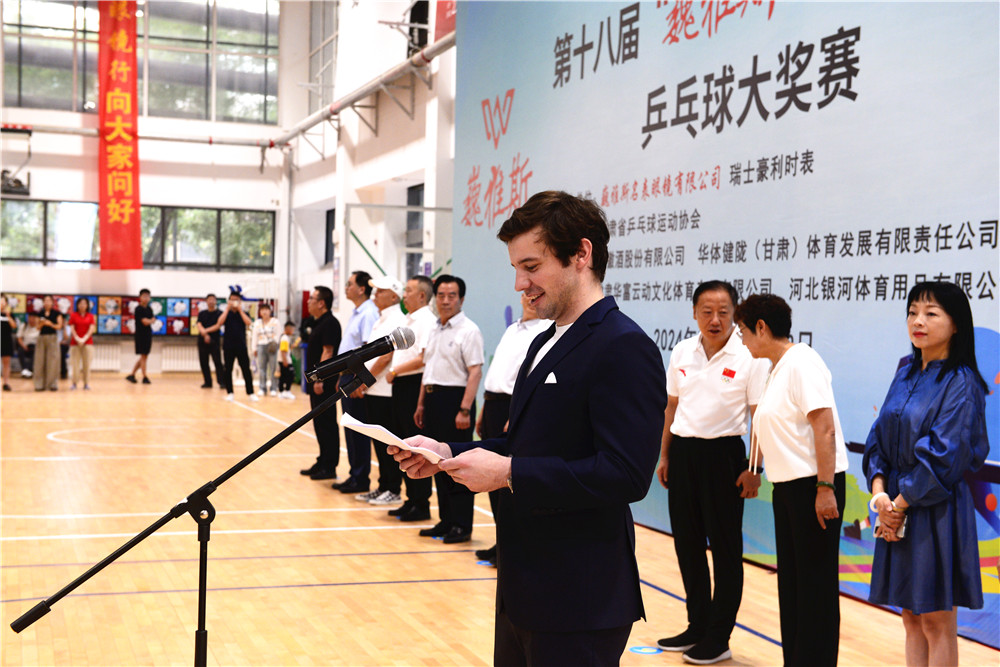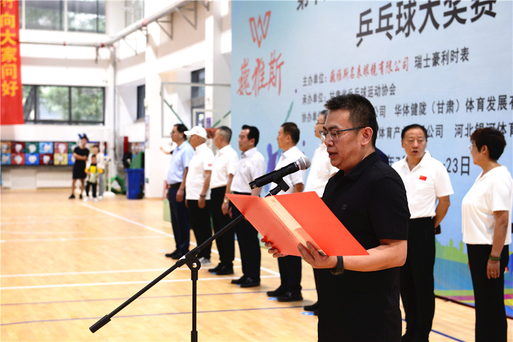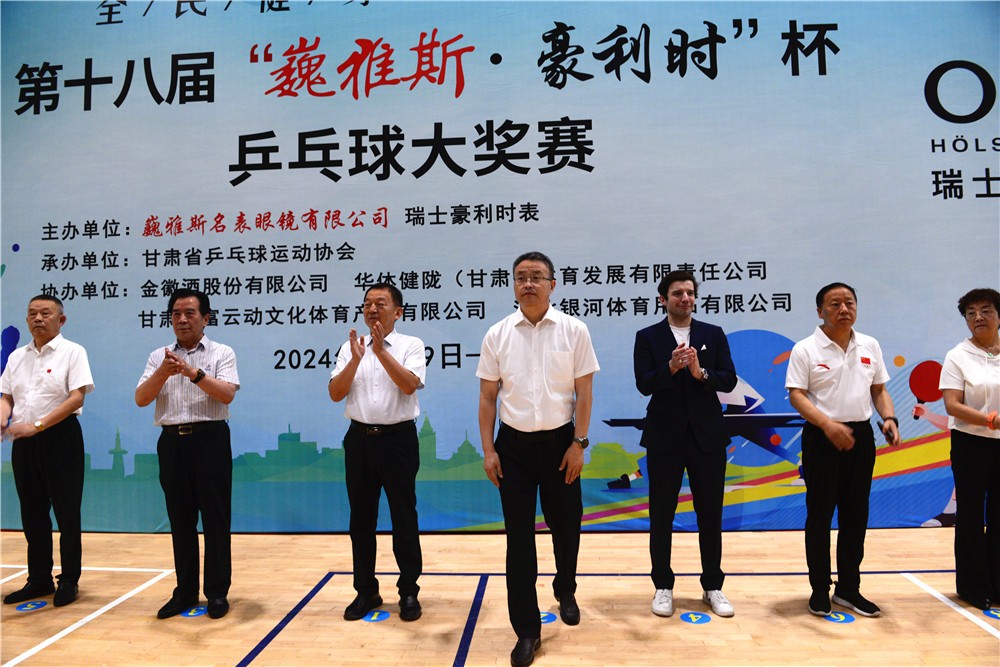 中國鐘表商分會副會長、甘肅省眼鏡協(xié)會會長、甘肅省乒乓球運動協(xié)會副會長、巍雅斯名表眼鏡有限公司董事長裴正江,瑞士豪利時表大中華區(qū)總裁菲利普·拉德納,豪利時中國總經(jīng)理章蔚及有關(guān)領(lǐng)導(dǎo)、運動員、裁判員、教練員、工作人員一起參加了簡樸但氣氛熱烈的大獎賽開幕式。